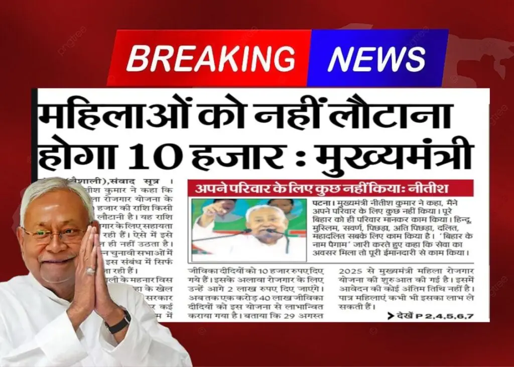 Posted onNovember 3, 2025November 3, 2025inFinance महिलाओं को नहीं लौटाना होगा ₹10,000 | मुख्यमंत्री महिला रोजगार योजना बिहार 2025